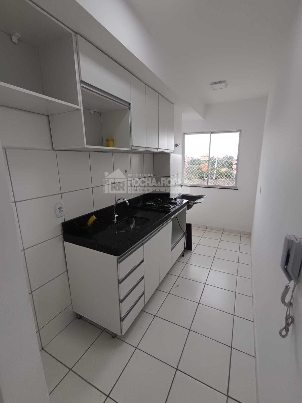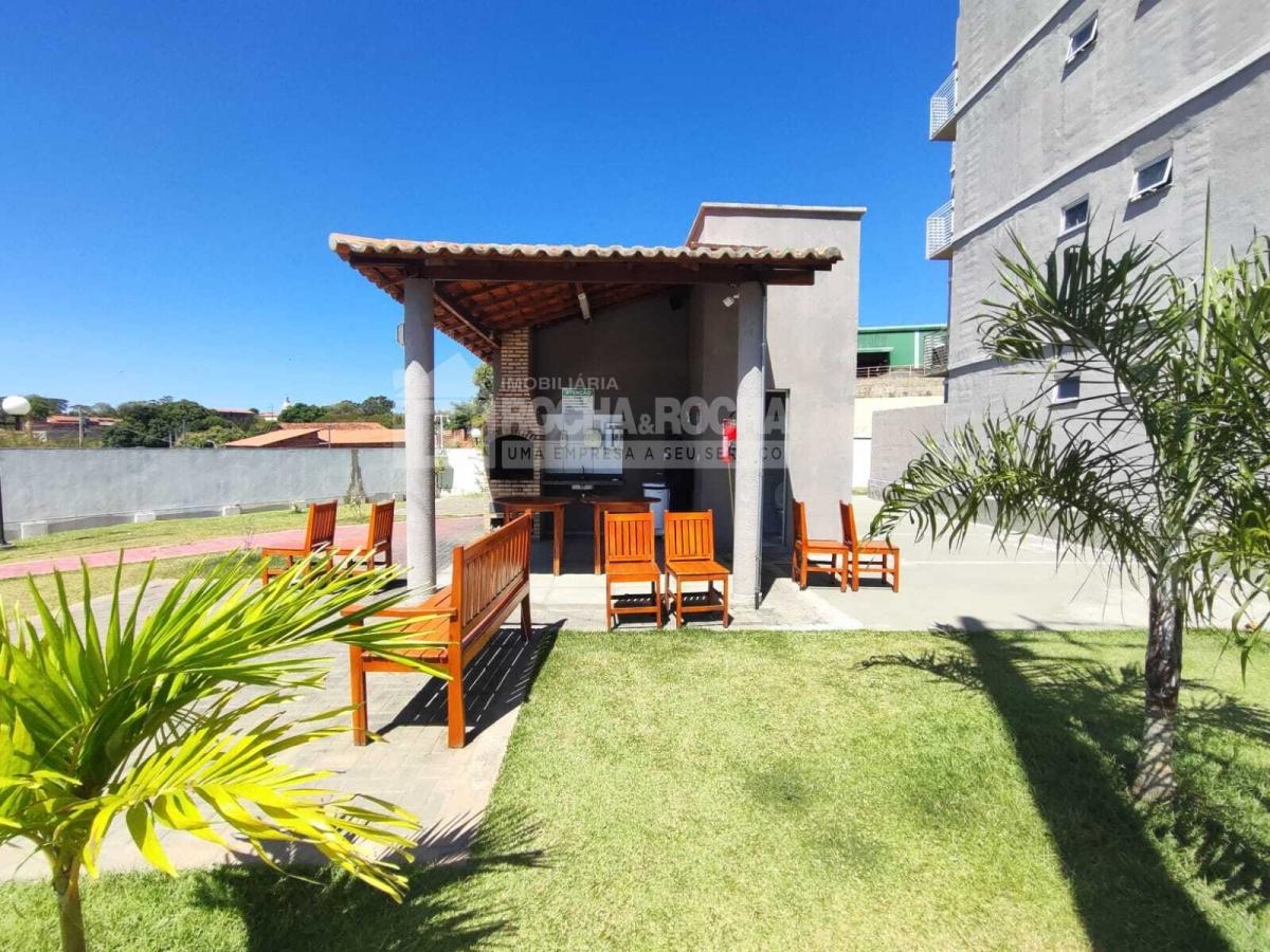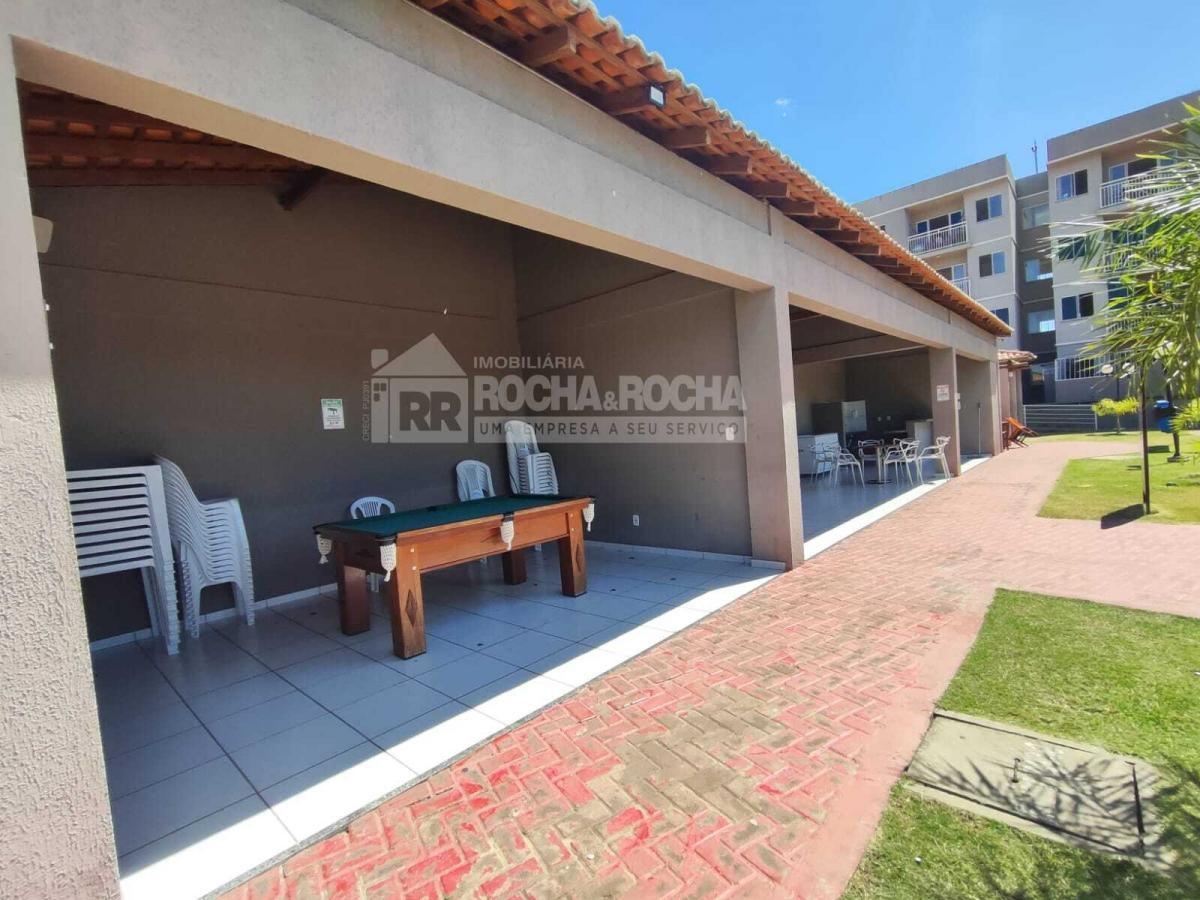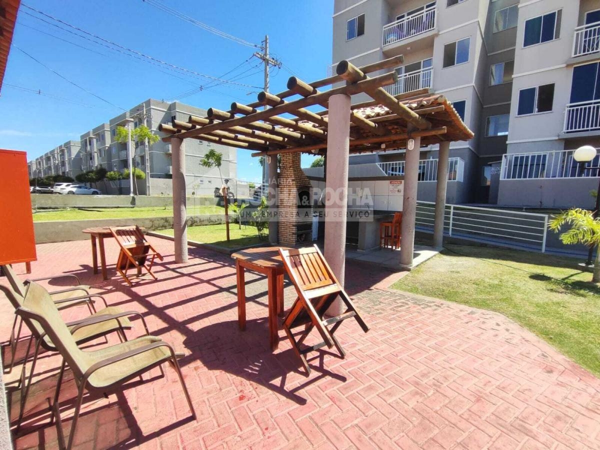 Excelente apartamento, com 02 quartos, sendo 01 suíte, WC social, sala de estar/jantar, varanda, cozinha, área de serviço, piso cerâmica e 01 vaga de garagem. Condomínio com salão de festas, salão de jogos, quadra poliesportiva, mercado, playground, brinquedoteca, churrasqueira e piscina, Sem Elevadores
