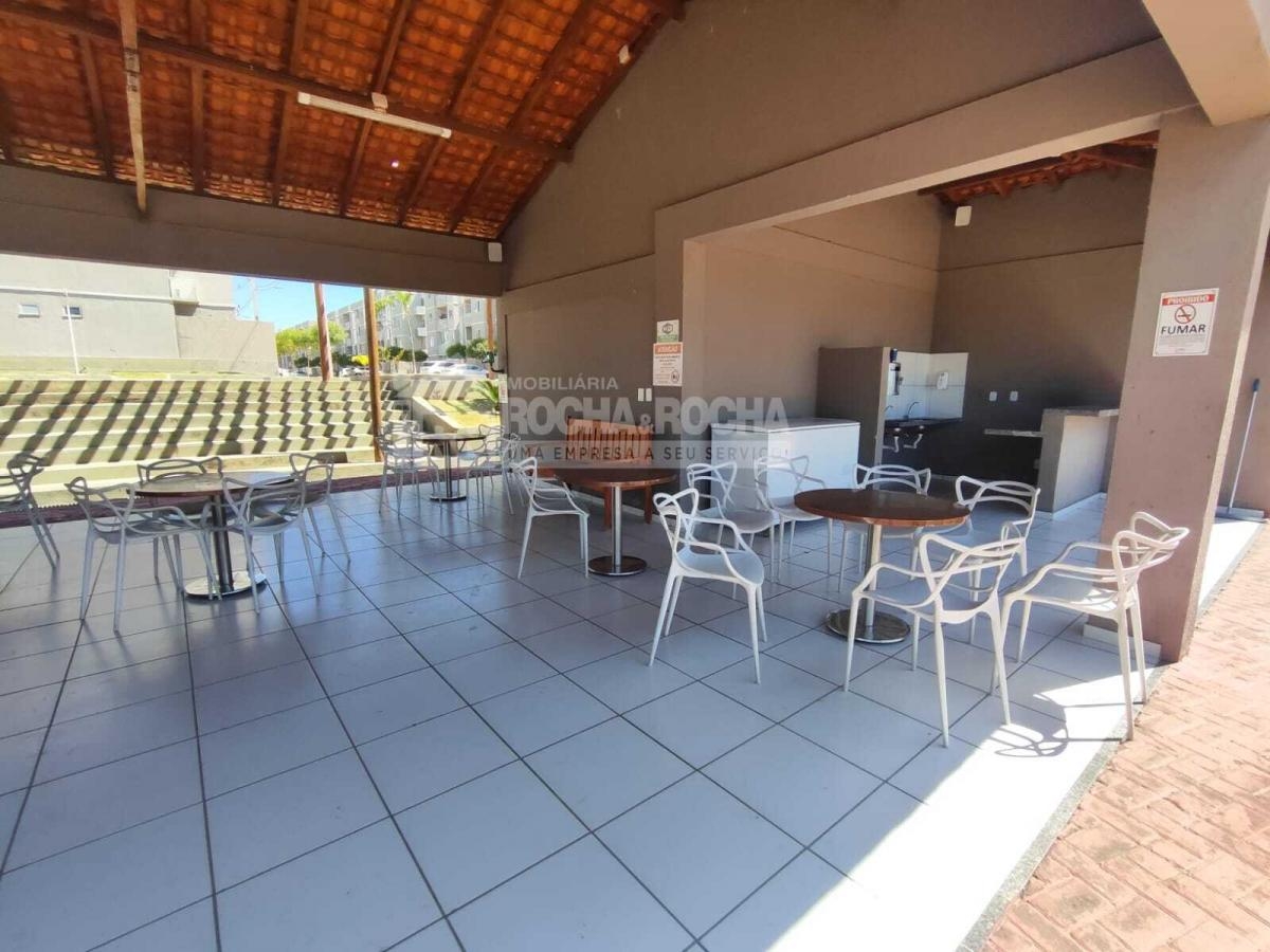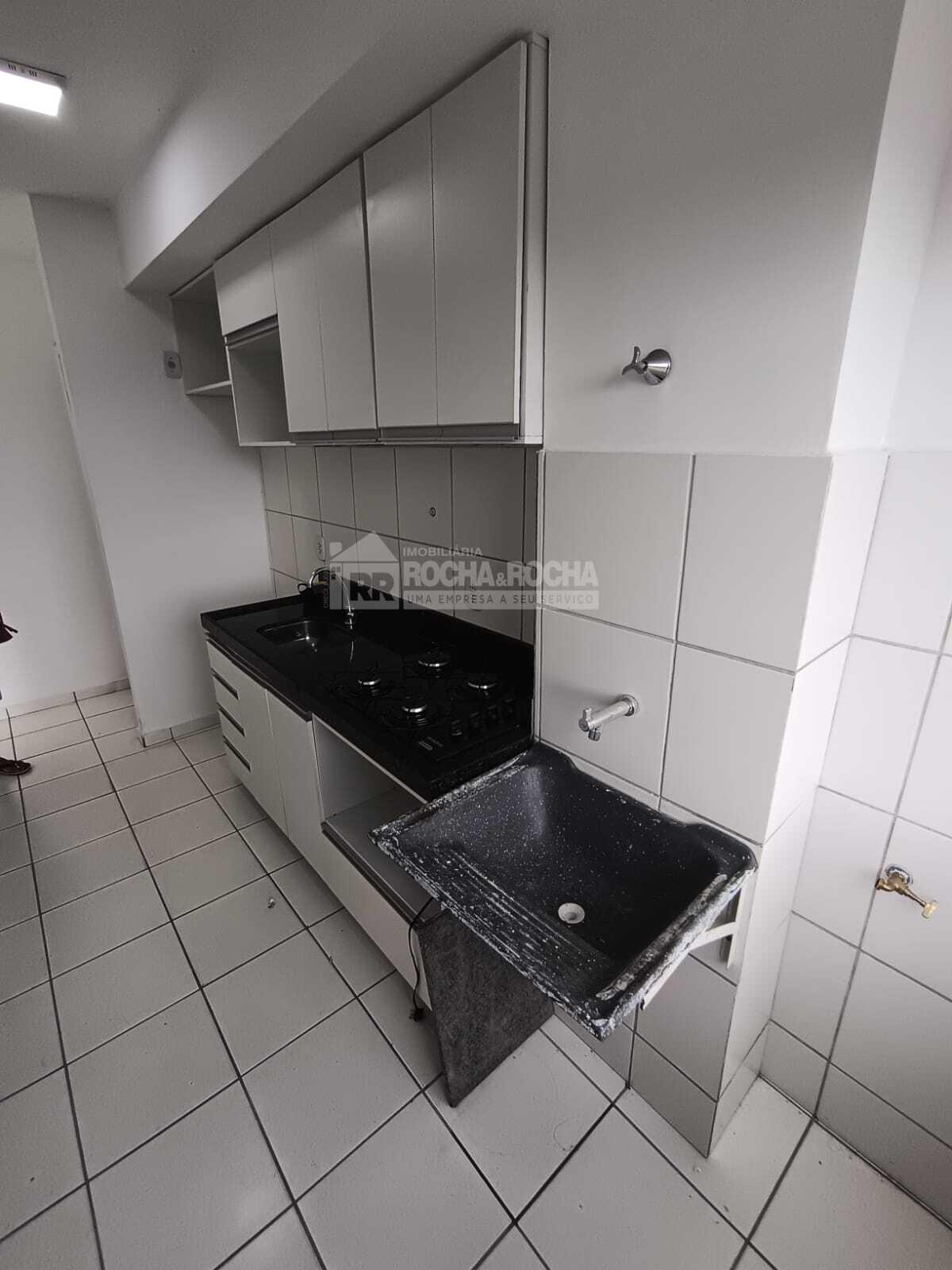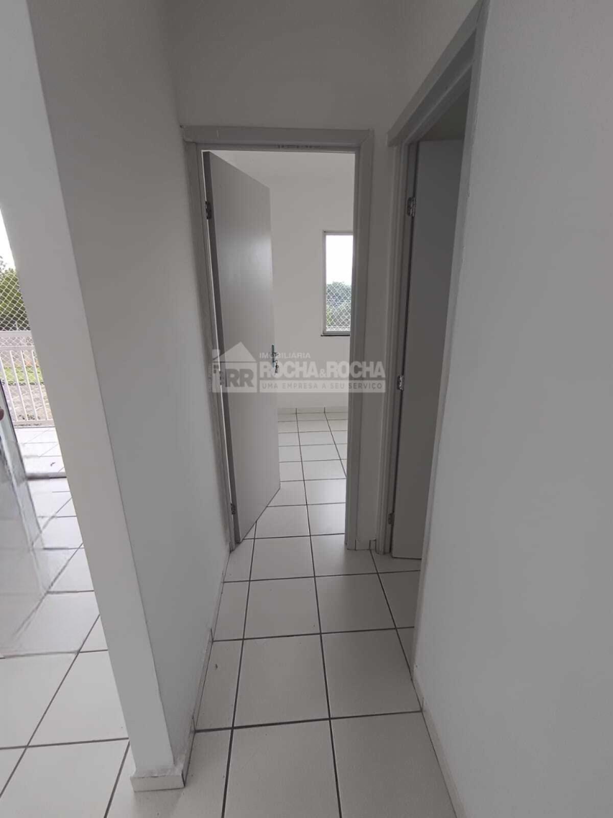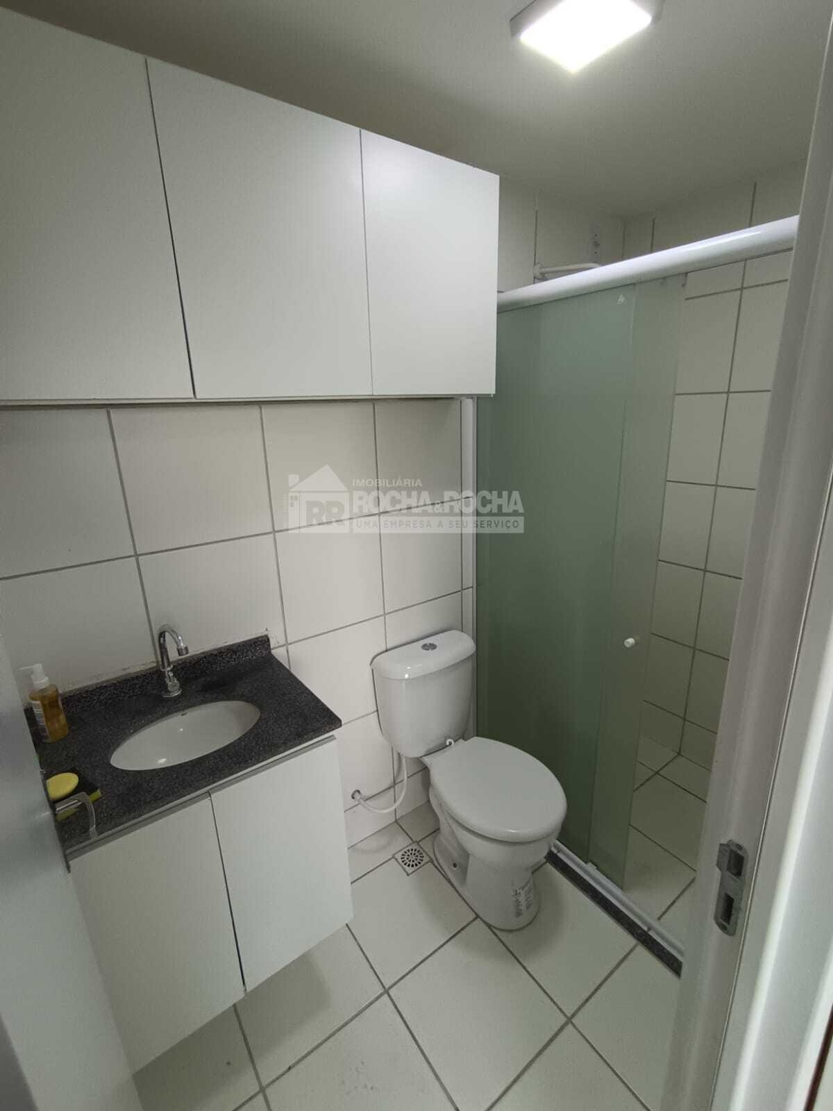 Excelente apartamento, com 02 quartos, sendo 01 suíte, WC social, sala de estar/jantar, varanda, cozinha, área de serviço, piso cerâmica e 01 vaga de garagem. Condomínio com salão de festas, salão de jogos, quadra poliesportiva, mercado, playground, brinquedoteca, churrasqueira e piscina, Sem Elevadores