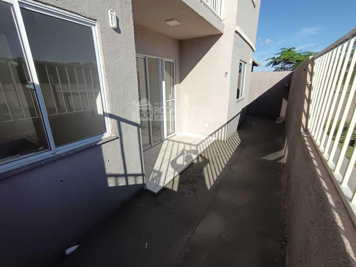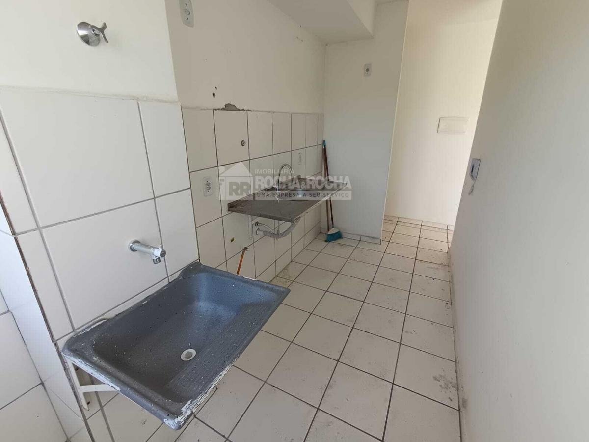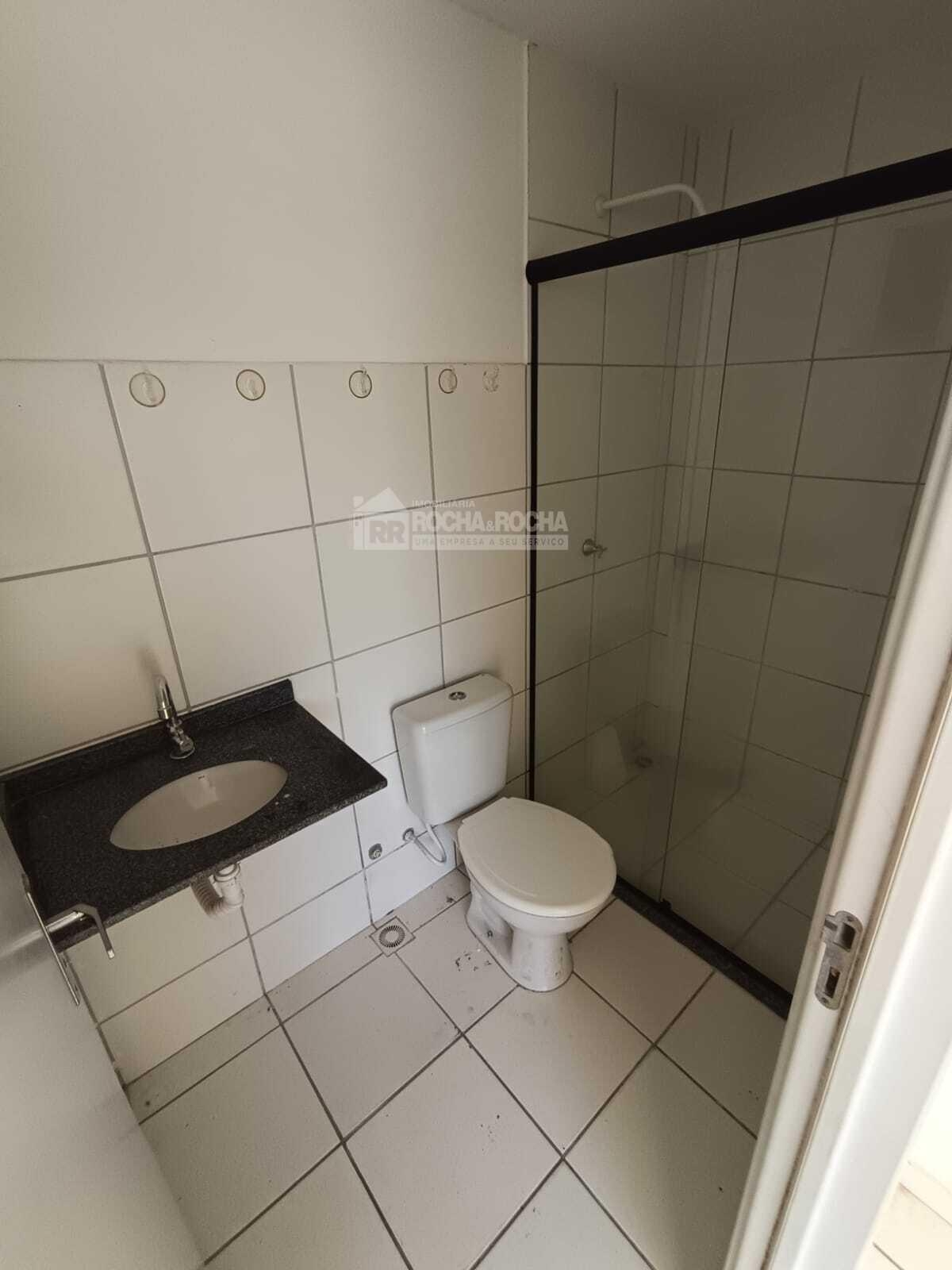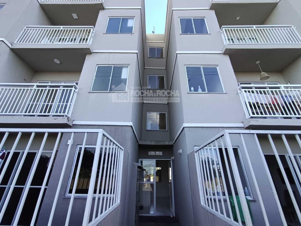 Excelente apartamento, com 02 quartos, sendo 01 suíte, WC social, sala de estar/jantar, varanda, cozinha, área de serviço, piso cerâmica e 01 vaga de garagem. Condomínio com salão de festas, salão de jogos, quadra poliesportiva, mercado, playground, brinquedoteca, churrasqueira e piscina, Sem Elevadores