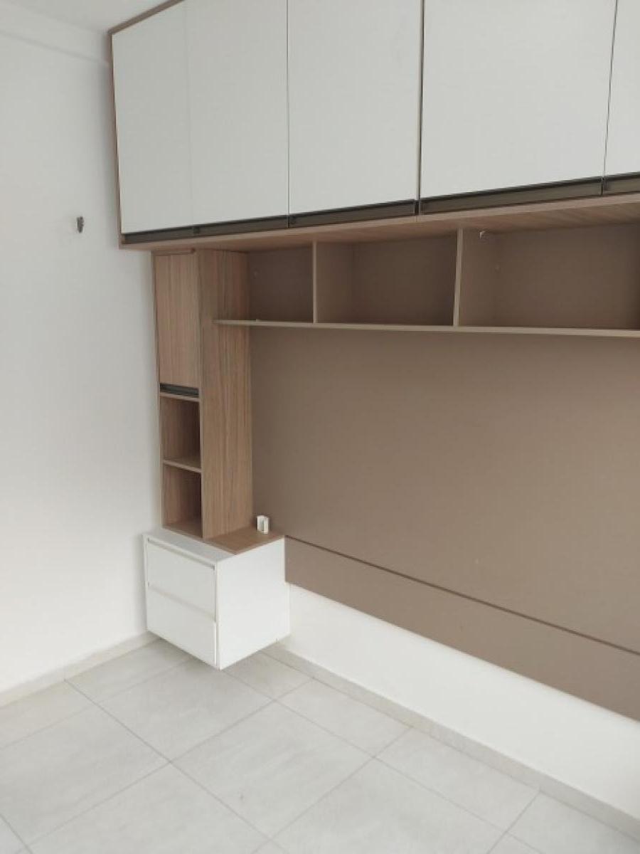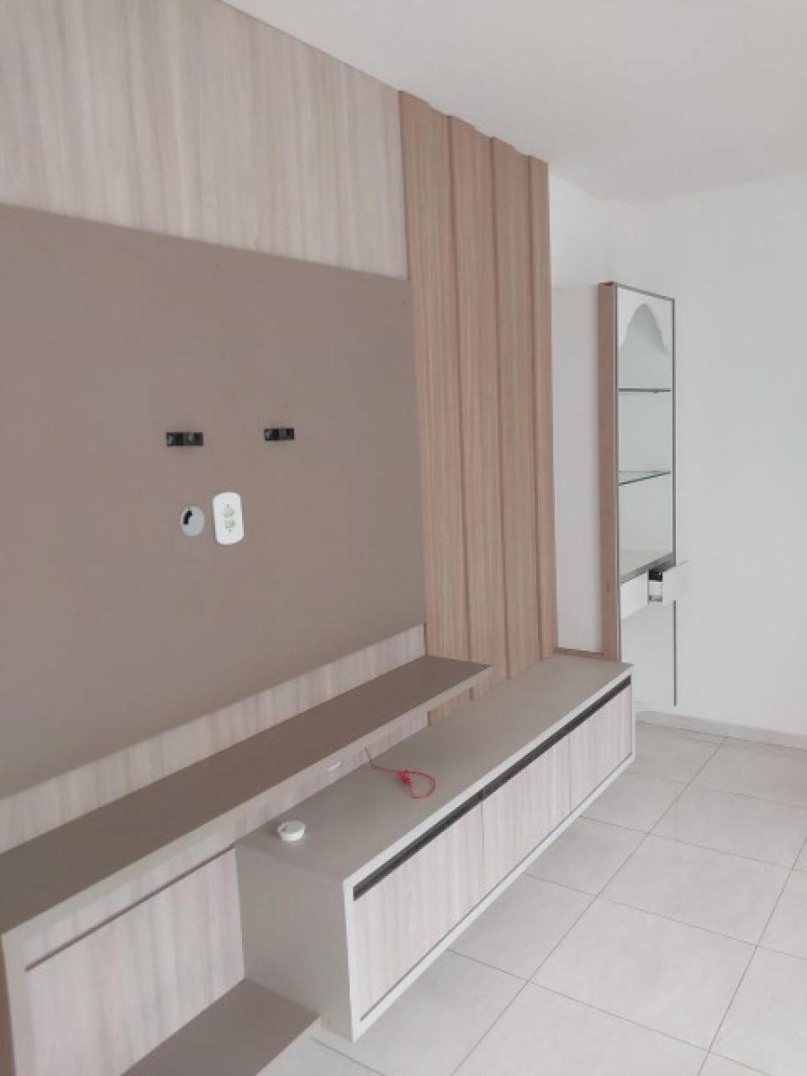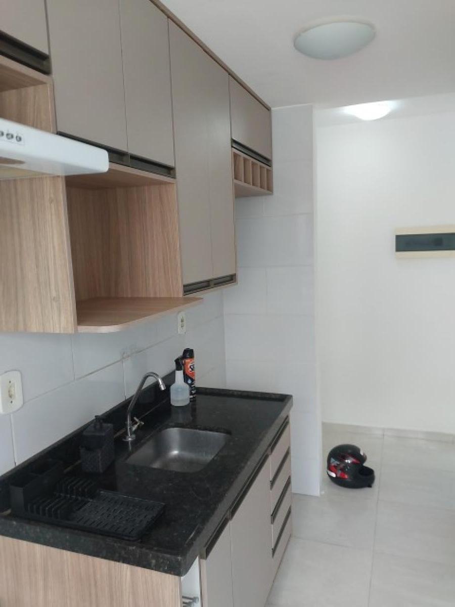 Apartamento com 02 quartos, sendo 01 suíte, sala de estar/jantar, cozinha com pia de fibra, banheiro social com pia de porcelana, área de serviço com lavanderia, forro de gesso e laje, piso de porcelanato, 01 vaga de garagem, condomínio com guarita, portão eletrônico, cerca elétrica, interfone, salão de festas com churrasqueira, playground, piscina.