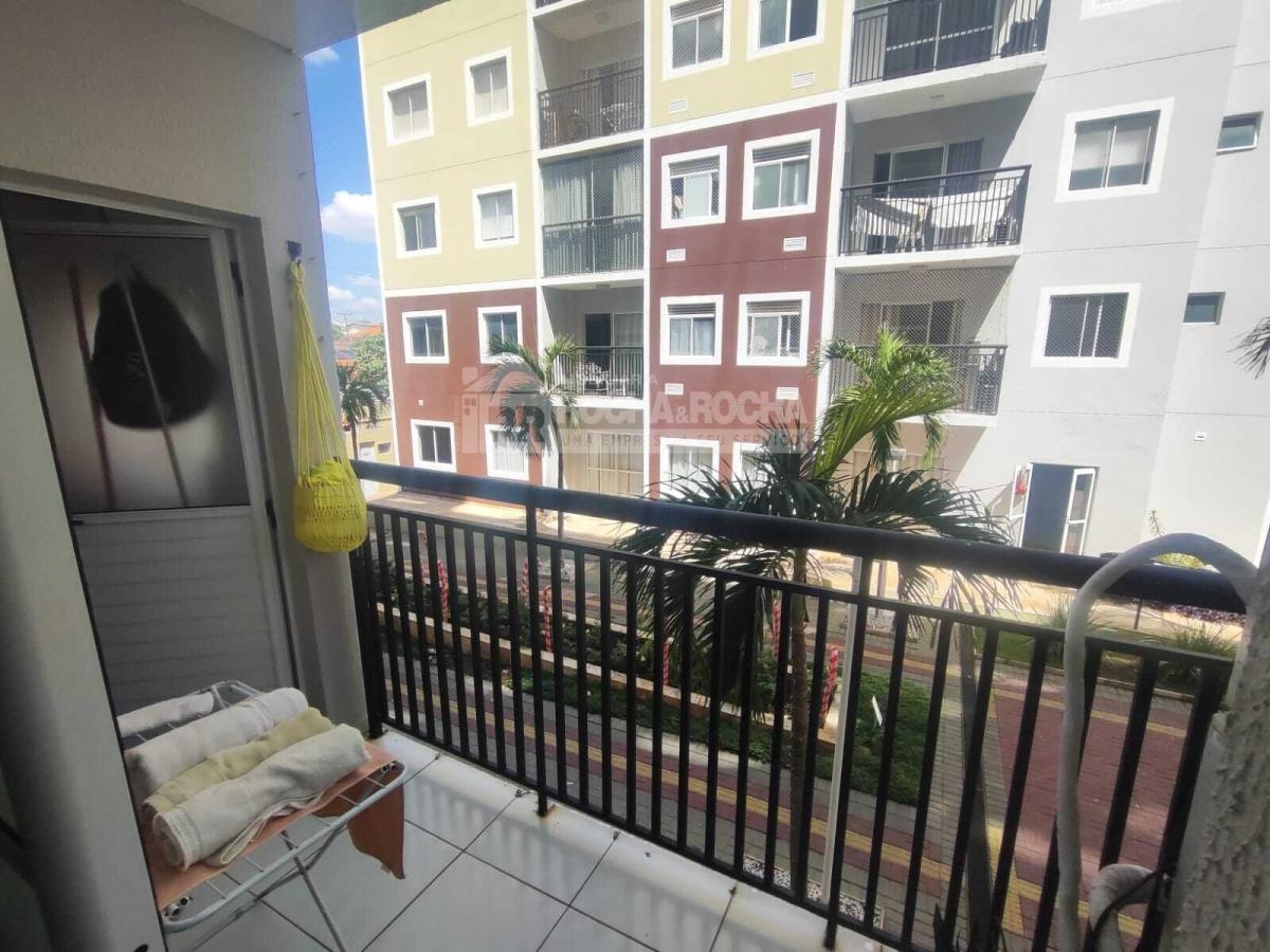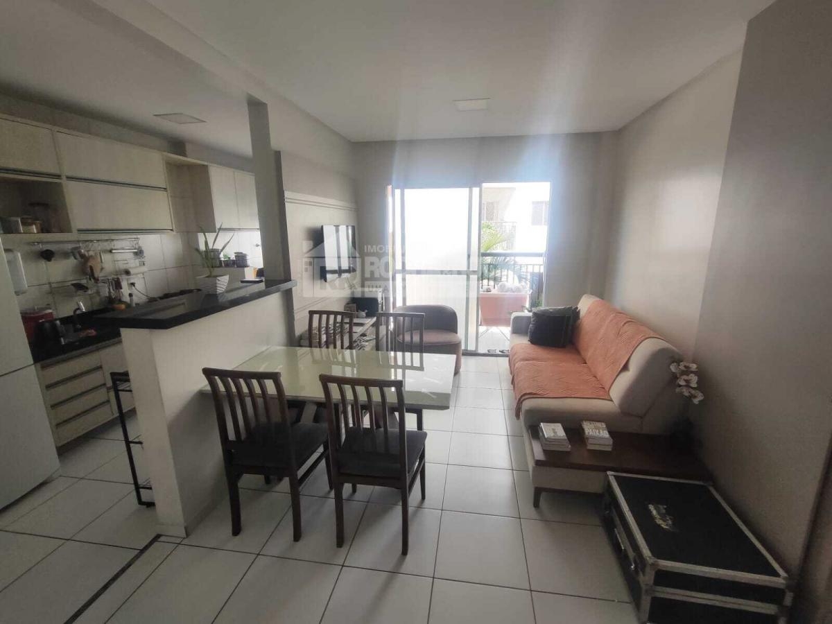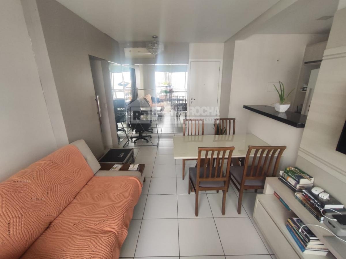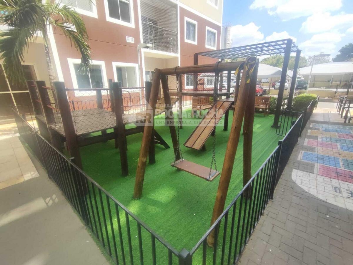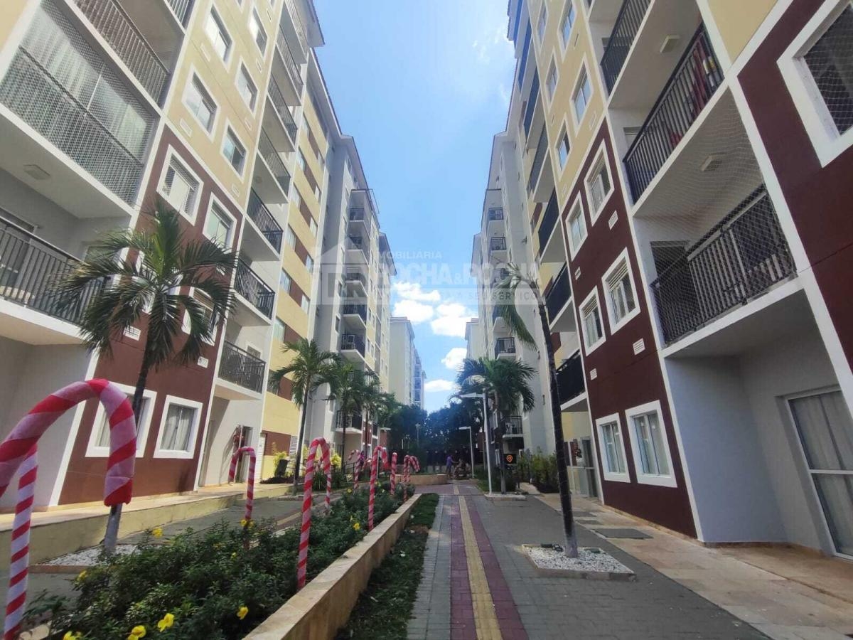 Excelente Apartamento, mobiliado, conta com sala de estar com varanda, sofá, hack e televisão, ar condicionado, possui 02 quartos com ar condicionado, quarto de casal com cama e guarda roupa, 01 Wc social. Cozinha com pia, geladeira, fogão, armários, Maquina de lavar. Area de lazer com psicina, salão de festas, salão infantil, Playground, churrasqueira. Conta 01 Vaga de garagem.