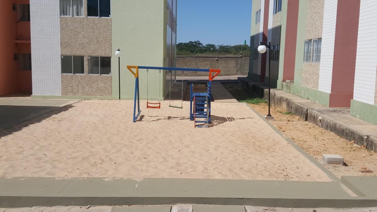 Apartamento residencial com 02 quartos, WC social, pia de granito, sala de estar/jantar, cozinha, pia de inox, área de serviço, piso cerâmica e 01 vaga de garagem. Condomínio com portaria, salão de festa, churrasqueira, piscina, playground, sala de jogos e mercado. Sem Elevador.