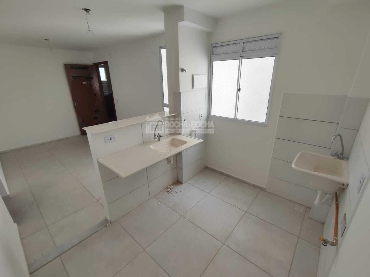 Apartamento com 02 quartos, sala de estar/jantar, cozinha com pia de fibra, revestimento de cerâmica, bancada de granito, área de serviço com lavanderia, banheiro social com pia de porcelana e revestimento de cerâmica, forro de gesso e laje, piso cerâmica, 01 vaga de garagem, condomínio com salão de festas com churrasqueira, playground, piscina, campo society, bicicletario, portão eletrônico, cerca elétrica.