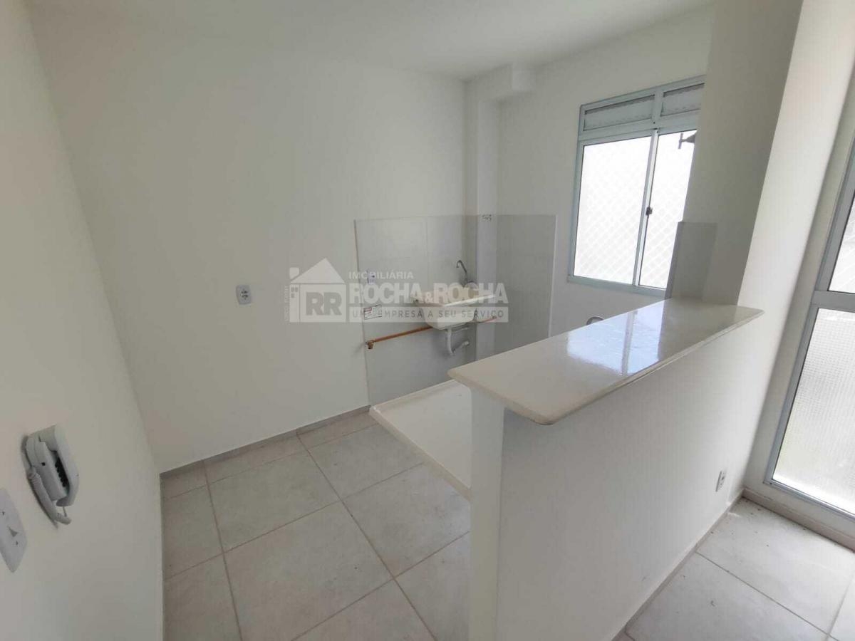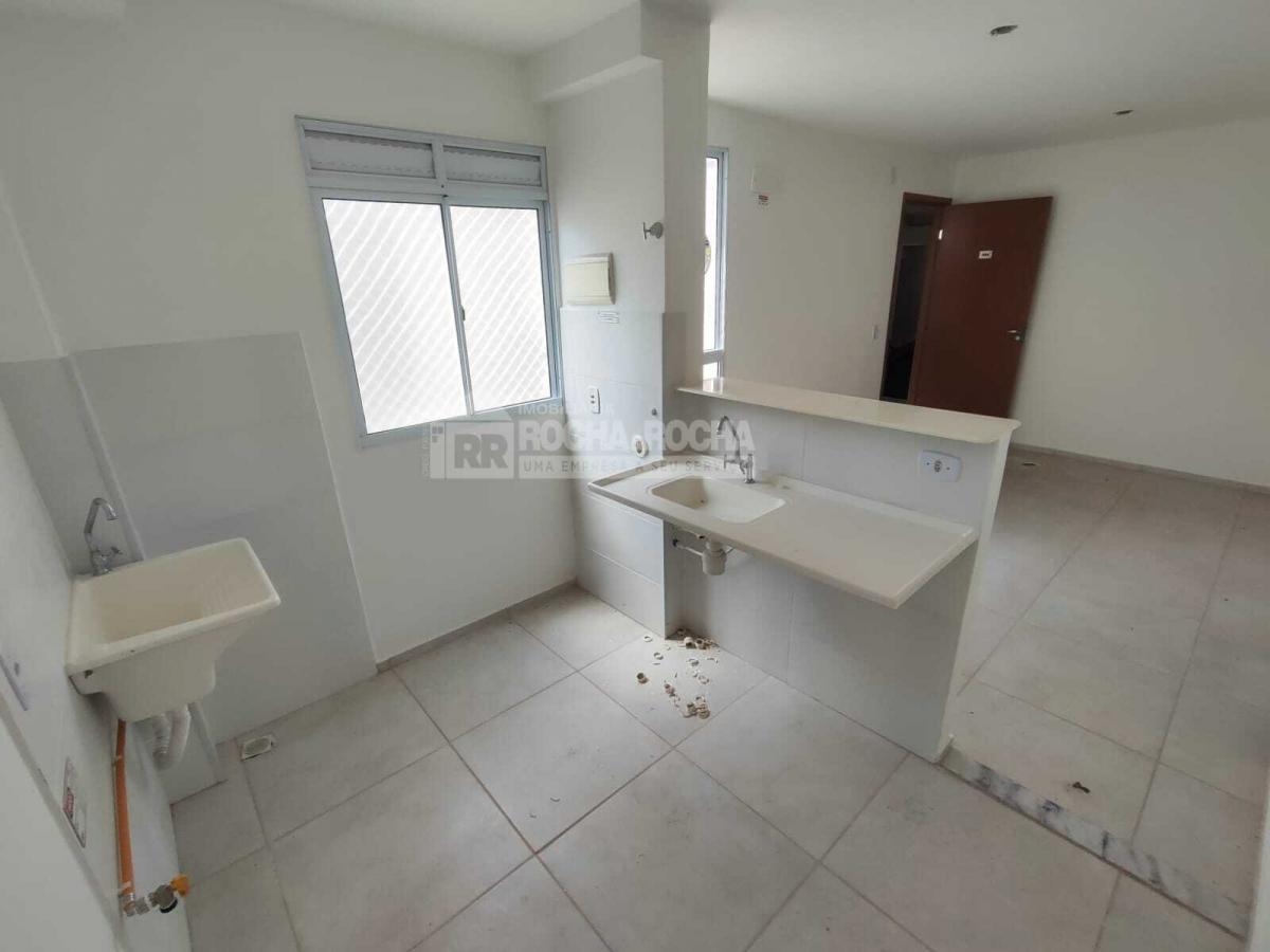 Apartamento com 02 quartos, sala de estar/jantar, cozinha com pia de fibra, revestimento de cerâmica, bancada de granito, área de serviço com lavanderia, banheiro social com pia de porcelana e revestimento de cerâmica, forro de gesso e laje, piso cerâmica, 01 vaga de garagem, condomínio com salão de festas com churrasqueira, playground, piscina, campo society, bicicletario, portão eletrônico, cerca elétrica.